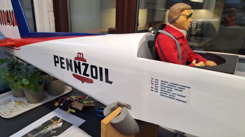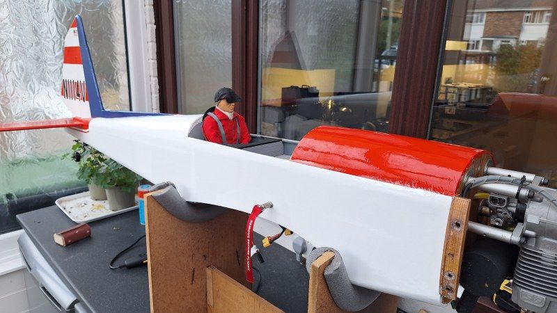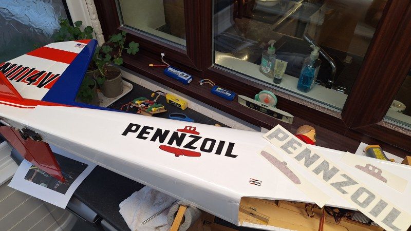 Back to the fuselage and time to give it the graphics. I had an envelope from Callie Graphics dated 2020. Grreat stuff. Apparently not as I just finished replacing some of the graphics and admiring my work there was something wrong. They are not in the correct scale! These graphics must have been for my Carl Goldberg chippy 60 size that is no longer with us. Oh well, give Callie a call for some more.