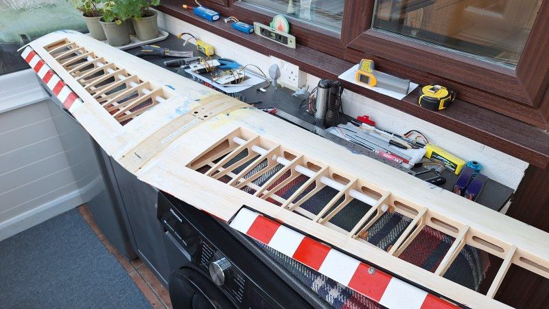 Wing tips are going to be a pain to cover as I remembered last time I did a repair. Trying to stretch film over the curves without melting it or burning my fingers. So, in case of making a mess of it I decided I would cover the wing tip first so if an issue I do not have to replace the whole strip on the wing. With the tips done I can proceed the probably the easiest part of covering.