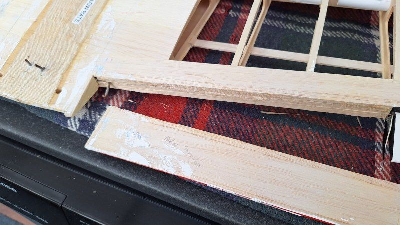 The wing also had some delamination of the covering and some time ago two patches on the surface, repairing holes created by mishandling and two on the underside where some time ago the landing gear got bent backwards enough to allow the spats to pierce the covering. Originally I was just going to recover but thinking whilst stripped get flaps cut out (they should be done along with the ailerons but the original builder decided against flaps so never cut them out. Well, I will and install the servos to operate them. After cutting out the flaps successfully, I later find that there were no hard points installed for control horns and hinges after I removed the top sheeting. Trying to install hard points was not that easy and after making a "pigs ear" of it I decided I will make my own up. A fiddly job though.